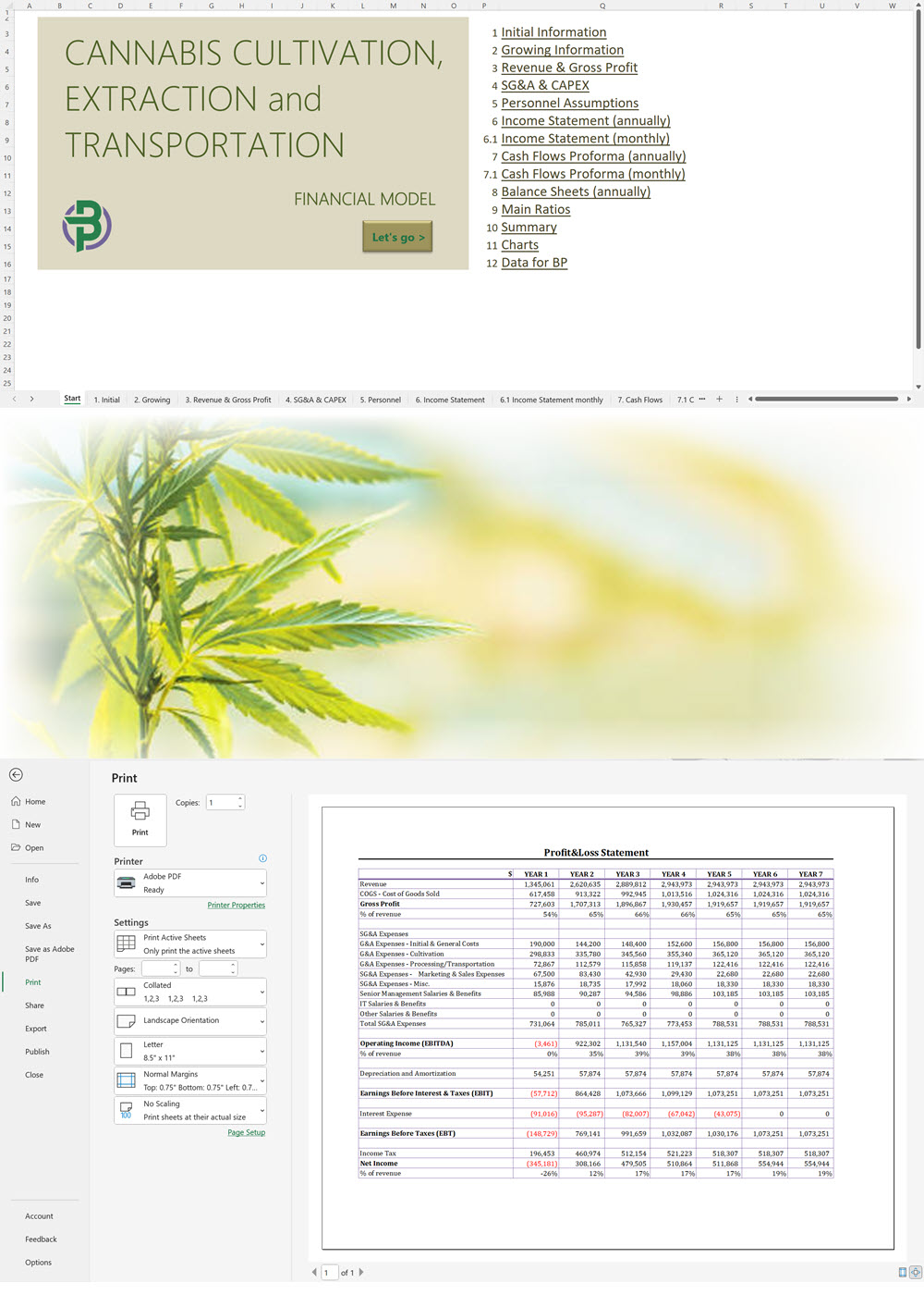 The Cannabis Cultivation Extraction Transportation Financial Model is a fully-functioning Excel financial model for a cannabis business to: