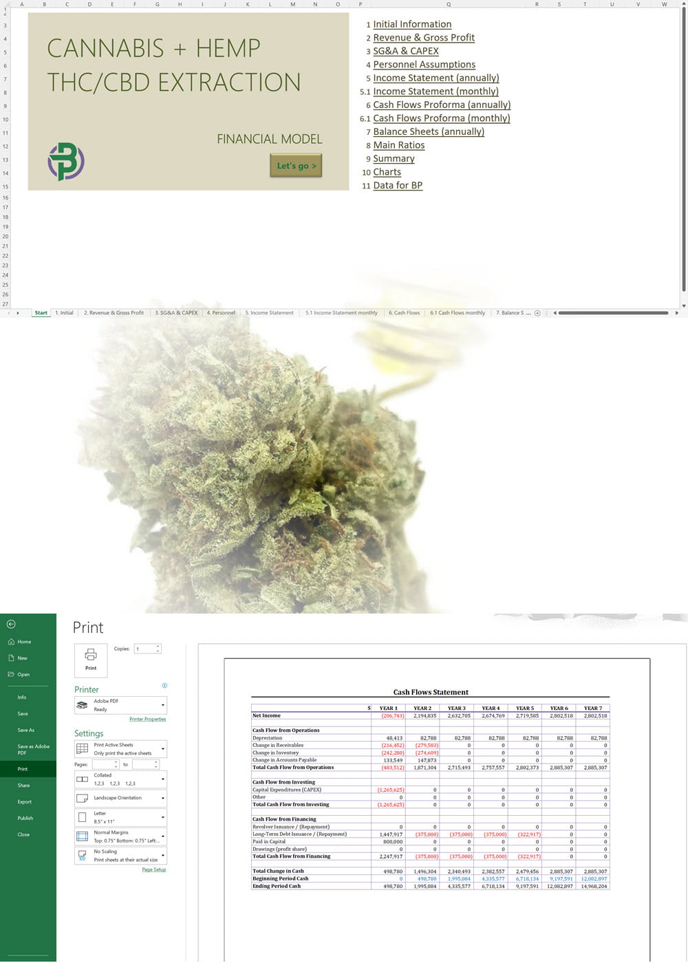 - The Cannabis and Hemp Extraction Lab Financial Model focuses on cash flow, using the revenue and expense forecasts to model your cash burn and cash on hand at all times. The statements, main ratios and summary tables are ready to print.